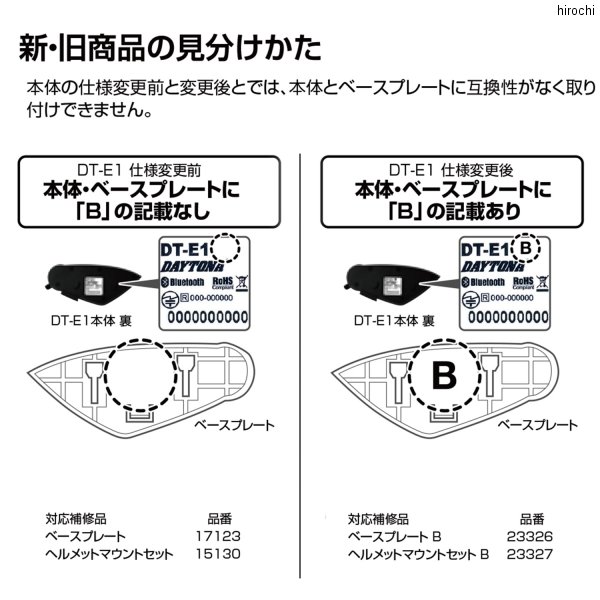 デイトナ インカム DT-E1用 補修品 ベースプレートB【仕様説明】DT-E1(品番:99113/99114)用の補修用ベースプレート。仕様変更後の「B」表記ありに対応した補修品です。※仕様変更前のDT-E1には、本体とベースプレートに互換性がなく取り付けできません。