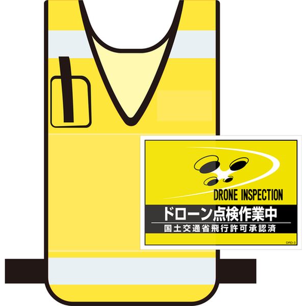 ・A4サイズ対応差込式ゼッケンに使用できます。・周囲にドローン作業をお知らせする必須アイテムです。・ドローン作業の周知用に。・色:イエロー・縦(mm):210・横(mm):297・表示内容:ドローン点検作業中/DRONE INSPECTION・1枚の厚さ(mm):0.5・セット商品:2枚1組・適合品:237220・237221・237222・237223・237224・合成紙・飛行禁止区域などにおきましては必ず飛行許可承認の届出が必要です。・ビニールポケットに色移りする場合がございますのでご注意願います。・差込式ゼッケン別売。・生産国 日本・JANコード 4932134233602・質量 20g・コード:195-2930 ・品目:237218