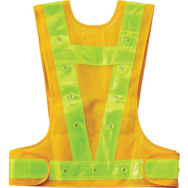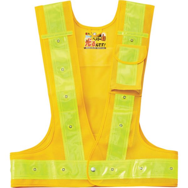 ・24個のLEDが腰部にも配置されており、視認性に優れています。・3箇所の便利な収納用万能ポケット付で、機能性に優れています。・ウエストはサイズ調整が可能です。・昼夜を問わず、あらゆる作業やパトロール時の安全対策に。・色:黄/黄反射・LED色:赤発光・着丈(cm):60・胴周り(cm):94~132・サイズ:フリー・幅(cm):52~65・電源:単3乾電池×2(別売)(238096、238099、238101)、単3乾電池×3(別売)(238097、238098、238100)・万能ポケット3箇所付(左胸前部1箇所・腰内部2箇所)・LED24個付・サイズ調整可能・反射材:幅60mm・メッシュ生地:ナイロン・反射帯:プラスチック・生産国 中国・JANコード 4932134223214・質量 380g・コード:791-4130 ・品目:238101