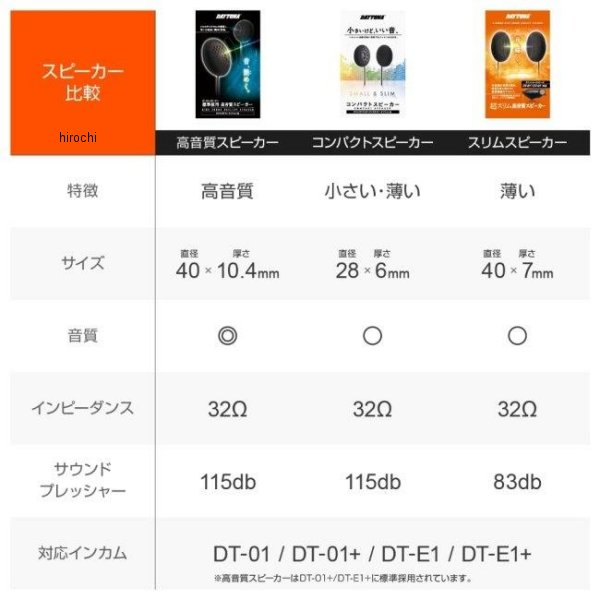 24977 デイトナ バイク用 ヘルメット スピーカー インカム DT-01/E1シリーズ用 オプション品 小型 薄型 コンパクトスピーカーDT-01/01+/DT-E1/E1+用の小型スピーカー直径28mmの小型スピーカーで、スピーカーホールがないヘルメットにも装着可能厚さ6mmで標準スピーカーに対して約4mm薄く、せまい空間でもスッキリ収まるスピーカーサイズ:Φ28×6mm/重さ:6g(片側)※この商品をDT-01/DT-E1へご使用になられる場合はDT-01はソフトウェアをV.3.03以上へDT-E1はV.2.04以上へアップデートする必要があります。