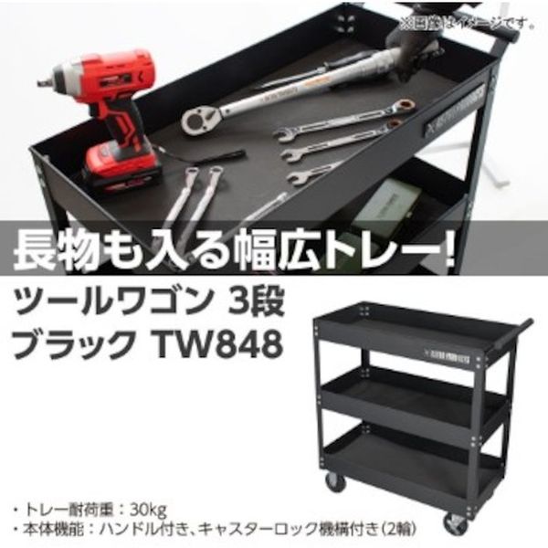 ・工具などを収納し、作業場所まで移動することができる、組み立て式のワゴンです。・3段のトレーにより収納力があり、横幅のあるトレーは長尺物を収納できます。・すべてのトレーには、傷防止用の保護マットが付属しています。・丈夫なスチール製になり、マグネット工具を取り付けることも可能です。・本体サイズ:W770×D360×H820mm(ハンドル、キャスター含む)・重量:14kg・トレー内寸:W700×D340×H80mm(各トレー共通)・キャスター径 :φ100mm・トレー耐荷重:30kg・本体機能:ハンドル付き、キャスターロック機構付き(2輪)・※必ず、耐荷重以下で使用してください。・生産国 中国・JANコード 2003000008487・質量 13.500kg・コード:253-1712 ・品目:2003000008487※こちらの商品は法人のお客様のみご注文を承ります。※こちらの商品はメーカー直送の為、別途1,650円(税込)送料がかかります。※日付・時間帯指定、及び代引き配送は不可となります。