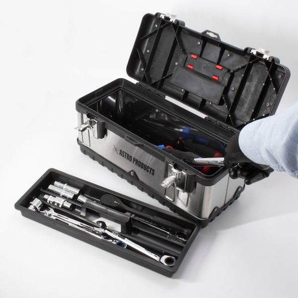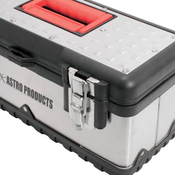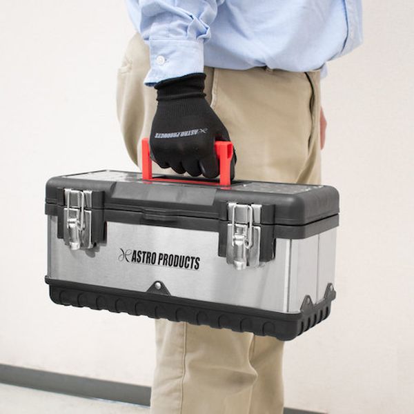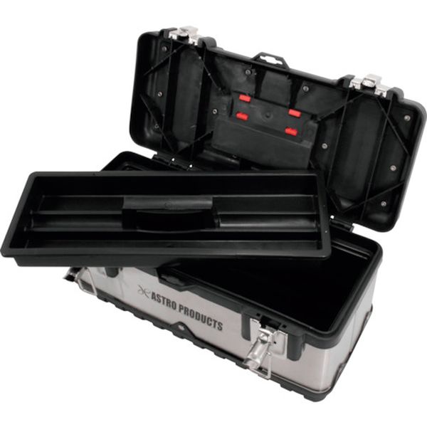 ・工具などの収納、保管を目的とした、持ち運びのできるコンパクトサイズで、外装の一部に丈夫なステンレスを使用している工具箱です。・持ち運びできるサイズながら、蓋を開けた内側の収納スペースが広く、収納力のある工具箱です。・工具を持ち出す際に使用できる、トレーが付属しています。・場所の取らないサイズなので、車載用としても使用できます。・蓋の上面には、持ち運び用の取っ手が付いています。・色:シルバー・外形寸法(mm)間口:380・外形寸法(mm)奥行:180・外形寸法(mm)高さ:240(取っ手含む)、180(取っ手含まず)・有効内寸(mm)間口:340・有効内寸(mm)奥行:125・有効内寸(mm)高さ:145・南京錠(別売):取付可・内寸:W340×D125×H145mm・ツールトレー内寸:W335×D40×H35mm×2・本体機能:上部取っ手付き・材質:ステンレス(ボディ側面)、プラスチック(ボディ、ハンドル)・ツールトレー×1・生産国 中国・JANコード 2003000001778・質量 1.600kg・コード:253-6381 ・品目:2003000001778
