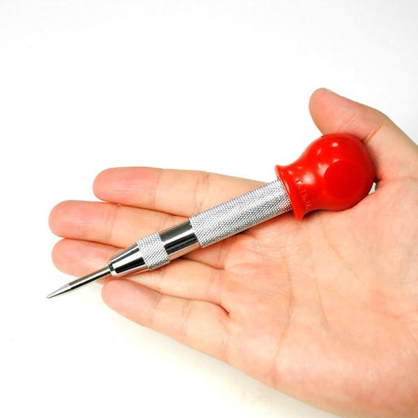 ・ドリルで穴を開けるとき、ドリルが逃げないように窪みを作るためのポンチです。・頭部を押し込むだけで、自動で打刻することができます。・滑りにくく、力の掛けやすいローレット加工が施されています。・頭部を回すことで、打刻する強さを調節できます。・全長(mm):135・本体機能:強弱調節付き・S2鋼(ポンチ)、真鍮(ボディ)、ABS(頭部)・生産国 台湾・JANコード 2002000025678・質量 85g・コード:254-4221 ・品目:2002000025678