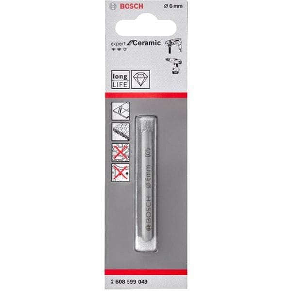 ・回転専用、乾式ドリルビットです。・ビットの先端の高品質のダイヤモンドで、高い耐久性を実現します。・ワックスがビット自体の中に充填されており穿孔部分を冷却します。・冷却水、ワックスは必要なく、穴あけ前の準備や穴あけ後の清掃の負担を大幅に軽減します。・被削材:磁器タイル他すべてのタイル。・刃径(mm):6・有効長(mm):20・シャンク形状:ストレート・シャンク径(mm):6・全長(mm):65・被削材:磁器タイル等・刃先径:6.0mmφ・有効長:20mm・全長:65mm・シャンク径:6.0mmφ・本体寸法:10×65×10mm・質量:10g・刃部:ダイヤモンド・胴部:鋼材(S45C)・1本・生産国 中国・JANコード 6949509232953・質量 10g・コード:682-5733 ・品目:2608599049
