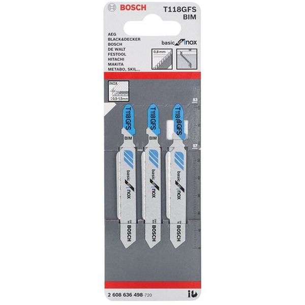・金工・ステンレス用です。・パウダーメタルハイス採用でステンレス切断に最適です。・炭化物のサイズ分布を均一化し耐熱性・耐摩耗性が大幅に上昇しました。・ステンレスの切断に。・山数:32・全長(mm):83・有効刃長(mm):50・厚さ(mm):0.9・切断タイプ:直線・適合機種:ボッシュ、マキタ、ハイコーキ(旧日立)、リョービなどのTシャンク形状のジグソー・切断能力(mm)ステンレス:0.5~1.5・切断能力(mm)軟鋼板:0.5~1.5・モデル名:T-118GFS・適合機種:ボッシュ、マキタ、ハイコーキ(旧日立)、リョービなどのTシャンク形状のジグソー・バイメタル(刃先:ハイス鋼、母材:炭素工具鋼)・3本入り・生産国 スイス・JANコード 3165140451864・質量 12g・コード:698-3577 ・品目:2608636498