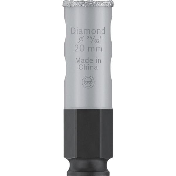 ・冷却水・ワックス不要で穴あけ可能、作業効率が大幅に向上します。・高品質ダイヤモンドにより高い耐久性を実現します。・ホールソー交換は工具不要のパワーチェンジシステム(使用時には別売のパワーチェンジシステムのシャンク、10mmチャック用/13mmチャック用/SDSプラス用のいずれかが必要となります)。・19~83mmまでの幅広いサイズ展開です。・磁器タイル他全てのタイルの穴あけに。・刃径(mm):20・ふところ深さ(mm):40・全長(mm):68・被削材:磁器タイル他全てのタイルの穴あけ・刃先径:20mmφ・有効長:40mm・本体寸法:20×68×20mm・刃先:ダイヤモンド・母材:炭素工具鋼・1本入り・パワーチェンジシャンク(10mmチャック用/13mmチャック用/SDSプラス用)は別売です。・生産国 中国・JANコード 6949509237057・質量 50g・コード:680-7794 ・品目:2608901553