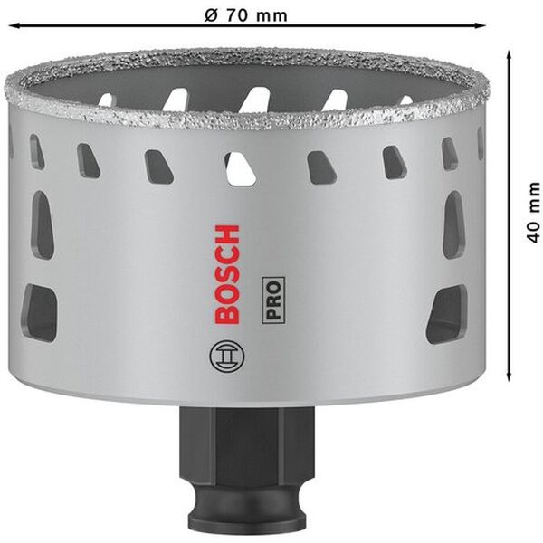 ・冷却水・ワックス不要で穴あけ可能、作業効率が大幅に向上します。・高品質ダイヤモンドにより高い耐久性を実現します。・ホールソー交換は工具不要のパワーチェンジシステム(使用時には別売のパワーチェンジシステムのシャンク、10mmチャック用/13mmチャック用/SDSプラス用のいずれかが必要となります)。・19~83mmまでの幅広いサイズ展開です。・磁器タイル他全てのタイルの穴あけに。・刃径(mm):70・ふところ深さ(mm):40・全長(mm):68・被削材:磁器タイル他全てのタイルの穴あけ・刃先径:70mmφ・有効長:40mm・本体寸法:70×68×70mm・刃先:ダイヤモンド・母材:炭素工具鋼・1本入り・パワーチェンジシャンク(10mmチャック用/13mmチャック用/SDSプラス用)は別売です。・生産国 中国・JANコード 6949509237224・質量 220g・コード:680-9270 ・品目:2608901570