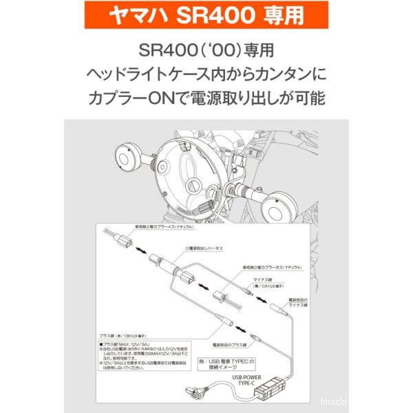 デイトナ 電源取出しハーネス93年-00年 ヤマハ SR400ヘッドライト内ブレーキスイッチカプラー
