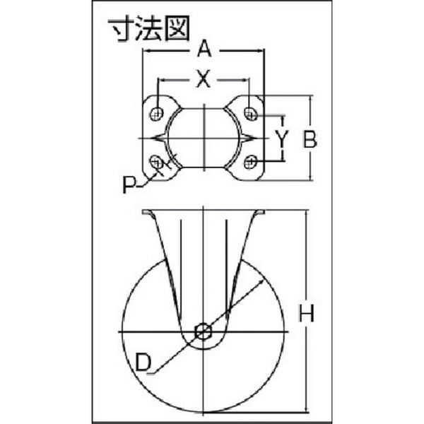 ・耐蝕性、耐水性に優れたオールステンレス製です。・錆を嫌う食品・水産関係や溶剤を使用する薬品関係に。・車輪径D(mm):200・タイプ:固定式・許容荷重(daN):220・許容荷重(kgf):224.4・車輪幅(mm):46・取付高H(mm):250・取付座A(mm):150・取付座B(mm):105・取付ピッチX(mm):112~119・取付ピッチY(mm):63~56・取付穴径P(mm):13・固定式・プレート式・金具:ステンレス(SUS304)・車輪:ステンレスホイール、ゴム巻き車輪(ステンレスローラーベアリング入)・生産国 日本・JANコード 4956237444819・質量 2.890kg・コード:392-9523 ・品目:300SRRB200