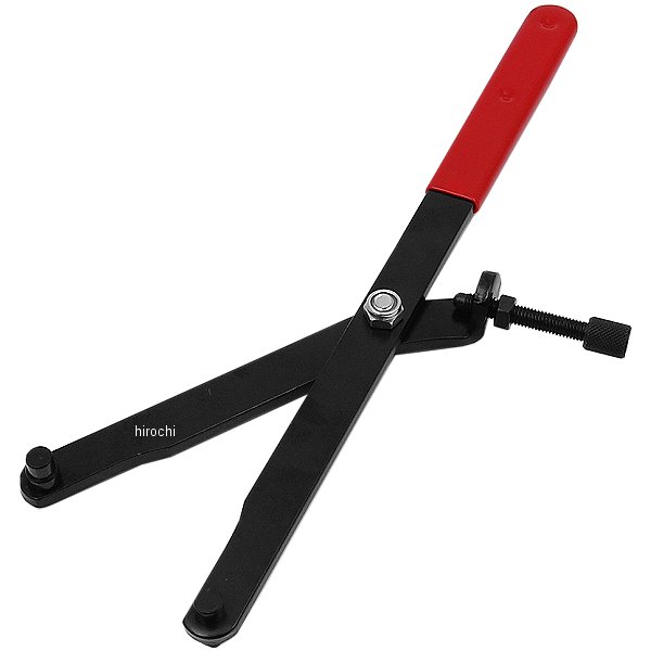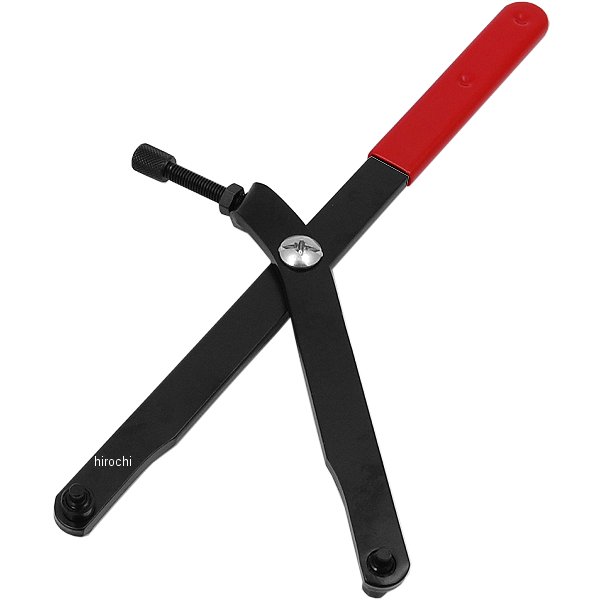 フライホイールホルダーです。汎用ピンピッチ:60mm~125mm固定ピン:5mm/9mm固定ロック付クラッチセンターナットを外す際に、フライホイールを固定するのに使用クラッチアウター、フロントスプロケットなどの脱着の際の空回りを防止する特殊工具