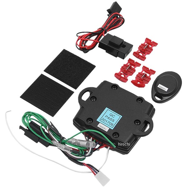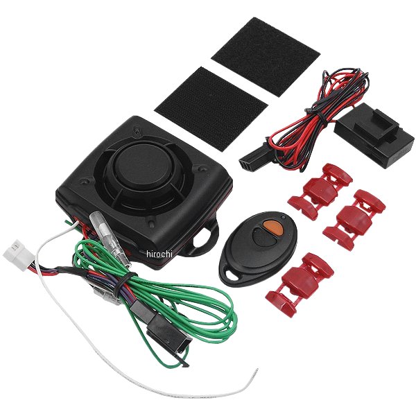 キジマ サイクルアラーム コンバット5セット内容:本体、配線、リモコン、エレクトラタップ、ベルクロ・愛車の盗難防止に、高感度バイクアラームの登場。・コンバットアラームがバージョンUP。・感知センサーのリニューアル。・コンパクトなのに大音量110dB。しかも省電力。本体に衝撃が加わると、110dBの大音量で警報が鳴ります。・取付け関単、単純そしてコンパクト。複雑な配線への接続がなく、コンパクトな設計のため、収納場所に困りません。・簡単操作で三段階の感度設定が可能。ボタン操作はON/OFF2つのボタンのみ。本体の結線状況により感度調整が出来ます。・鳴り続けないから、近所迷惑にならない。1回の衝撃につき PI-YO、PI-YO と鳴り、再び待機状態に戻ります。連続した衝撃でもその都度で鳴ります。・補修リモコンは最大3個まで設定可能なブランクキー採用。リモコンを紛失しても再設定が可能です。・9Vバッテリーやマイクロウェーブセンサー等のオプションも充実。