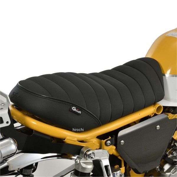 Gクラフト カスタムシート 段付きタックロール モンキー12519年-25年 ホンダ モンキー125素材:FRP 合成皮革 SS400 (パウダーコート)キャブモンキーのシートで長年愛されてきた段付きタックロールシートのモンキー125用です。純正の形状から大幅に変更し、ルックス、足つき性の向上を目的に商品化しました。シート高は純正から60mm下げ、全体をシェイプすることにより足つき性を良くしています。またシート後端にはGcraftのロゴをエンボス加工し、タグも縫い付けてあります。