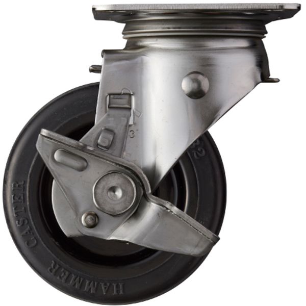 ・耐蝕性・耐水性に優れたオールステンレスキャスターです。・使用例 : 食品工場・店舗及び事業所等の錆や腐蝕をきらう環境で使用される台車や機器等に最適です。・旋回部にはステンレスボールが上下二段に組込まれており、荷重に対する抵抗力が大きく、旋回もスムーズです。・車輪径D(mm):100・タイプ:自在式(ストッパー付)・許容荷重(daN):120・車輪幅(mm):32・取付高H(mm):132・取付座A(mm):90・取付座B(mm):90・取付ピッチX(mm):68(71)・取付ピッチY(mm):68(71)・取付穴径P(mm):11・偏心(E) (mm):35・旋回半径(mm):91・車輪品種 499S0S-RBU・プレート式・金具:ステンレス・車輪:ゴム・生産国 日本・JANコード 4956237430959・質量 1082g・コード:337-1552 ・品目:313SRBU100