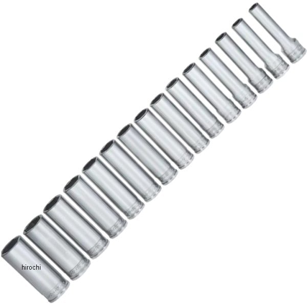 1/2インチ ディープソケットセット 6角 ミリサイズセット内容:ディープソケット/13ピ ース(12・13・14・15・16・17・18・19・20・21・22・23・24mm)・ボルト・ナットに対しより肉厚な壁面でグリップするよう接触面を変更。最大25%の強度UPを実現。※従来FlankDrive Socket比・ソケット内壁に設計された独自のグリップ構造により、破損したボルト・ナットに対し回転力50%UP。・6角形リップ部分施された面取り加工により、ボルトナットへのスムーズな装着と回転を実現。※商品お届け時期につきまして、通常は一か月半前後となっておりますが仕入れ先の出荷状況により、お時間を頂戴する場合がございます。※商品手配後に、供給不可となる場合がございます。あらかじめご了承のうえご注文ください。