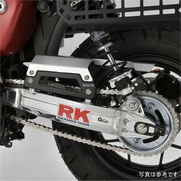 Gクラフト チェーンカバー19年-22年 ホンダ モンキー125素材:アルミビレットパーツと板材を組み合わせたハイブリッドチェーンカバーです。スイングアーム取り付け部はアルミプレート(6mm)を使用。リアスプロケット上部まで覆う形状。※純正スイングアーム、Gクラフトスイングアーム対応。
