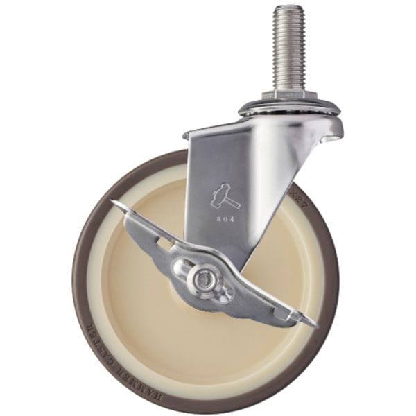 ・耐蝕性、耐水性に優れたオールステンレス製です。・水周り・食品・水産関係に多く使われています。・車輪径D(mm):125・タイプ:自在式(ストッパー付)・許容荷重(daN):70・車輪幅(mm):27・取付高H(mm):152・軸長L(mm):40・ねじT:M16・ねじピッチ(mm):2.0・偏心(E) (mm):39・旋回半径(mm):103・車輪品種 439S0E-UB・使用スパナ(mm):23・ねじ込み式・金具:ステンレス(SUS304)・車輪:ウレタン(ローラーベアリング入)・ホイール:ナイロン・生産国 日本・JANコード 4956237050034・質量 633g・コード:814-1922 ・品目:315EAUB125
