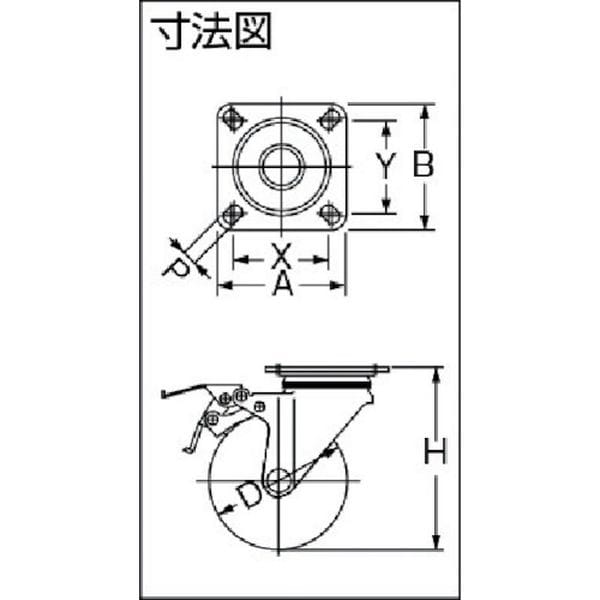 ・オールステンレスですので、耐蝕性・耐水性に優れています。・RoHS適合品です。・水周り・食品・水産関係に多く使われています。・車輪径D(mm):125・タイプ:自在式(ストッパー付)・許容荷重(daN):150・許容荷重(kgf):153・車輪幅(mm):38・取付高H(mm):168・取付座A(mm):102・取付座B(mm):102・取付ピッチX(mm):75~80・取付ピッチY(mm):75~80・取付穴径P(mm):11・許容荷重(N):1500・プレート式・自在式(ストッパー付)・車輪形状:ナイロンホイールゴム巻車輪・金具:ステンレス(SUS304)・車輪:ゴム・315S-R65、75は315S-RD50のストッパータイプ、315S-RU125、150は315S-RU100のストッパータイプになります。・生産国 日本・JANコード 4956237051529・質量 1760g・コード:125-1384 ・品目:315SRU125