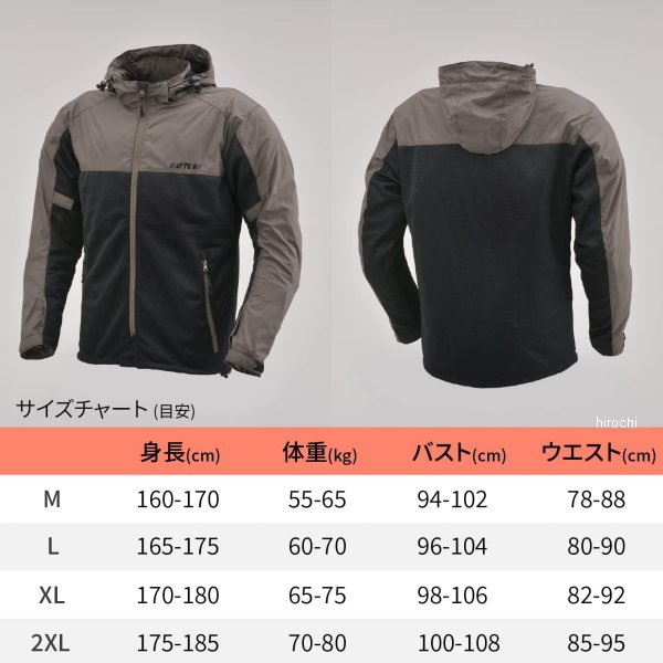 ヘンリービギンズ Henly Begins DJ001フィールドメッシュ ブラウン XLサイズ軽くしなやかなテキスタイル生地と通気性の高いメッシュ生地を組み合わせ、ライトな着心地が夏のライディングに最適なパーカー付きカジュアルジャケット。付属のプロテクターはSAS-TECへのアップグレードが可能で、胸部には別売のSAS-TEC 胸部プロテクター 分割タイプ(94856)が装着可能。フード脱着可能。 カラー:ブラックサイズ:L素材:ナイロン / ポリエステルソフトプロテクター:肩 / ひじ / 背中対応シーズン:春 / 夏? 寸法 ?着丈 68cm肩幅 44.5cmバスト 115cm裾周り 115cm袖丈 63.5cm ※図面寸法のため製品により1~2cmの差が発生する場合があります。
