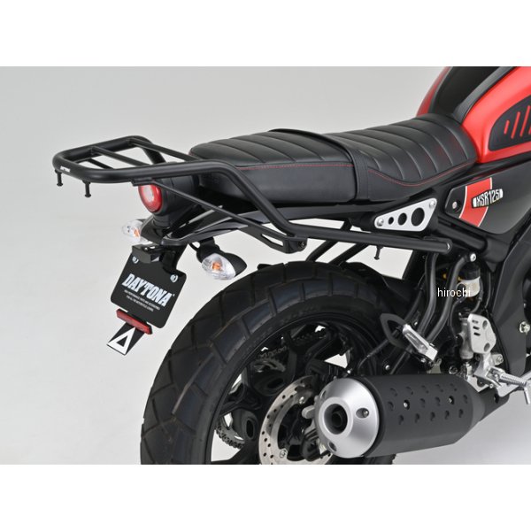 デイトナ グラブバーキャリア24年 ヤマハ XSR125パイプ径:φ22.2最大積載重量:6kg積載部分寸法:長さ212×幅(前側)266×幅(後側)168mmカギ2本付属(スペアキー含む)【仕様説明】タンデムシートとキャリアの上面を揃えることで大きな荷物も積載できるキャリア。GIVIリアボックスの装着に対応し、モノロックの汎用ベースが取付可能。(ベース込みのBOX重量が5kgまで)スマートに取付が可能な車種専用のヘルメットホルダー付き。LEDフェンダーレスキット(品番:35225)との同時装着可能。※トップケース取り付けの場合は32L以下のサイズを使用してください。フレーム破損の恐れがあります。トップケース(ベース込み)重量が5kg以下の物をご使用ください。※ヘルメットロックは駐車中のヘルメットの盗難を抑止する商品です。ホルダーにヘルメットを装着したままの走行は危険ですのでお止めください。※ヘルメットロックは盗難やイタズラを抑止するものであり、完全な盗難防止を保証するものではありません。※ヘルメットロックに装着した物の盗難、紛失、破損、故障に関しましては一切保証いたしかねます。あらかじめご了承ください。※カギのみの補修設定はありませんので、カギの紛失にはご注意ください。(カギ2本付属)※ヘルメットホルダー(品番:34989)との同時装着不可。