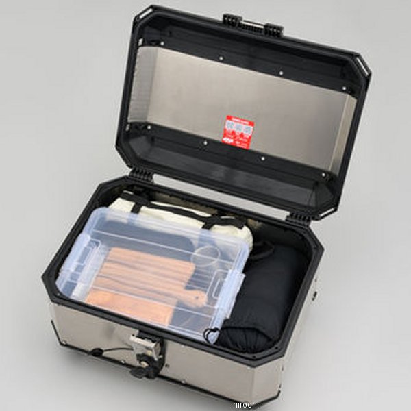 デイトナ GIVI ALA56AD アルミモノキーケース本体重量:7kg奥行×幅×高さ(外側):463×559×328(mm)(※外寸奥行は取っ手を含みます)最大積載重量:10kg(※フィッティングの積載制限以上は積載しないでください)56Lのアルミトップケース1.5mm厚のアルミ板をメイン素材とした堅牢な造りケース外部のノブを回すことで簡単にケースが脱着可能フラットなケース上面と4箇所のベルトループでシートバッグなどを装着可能※ベース別売り