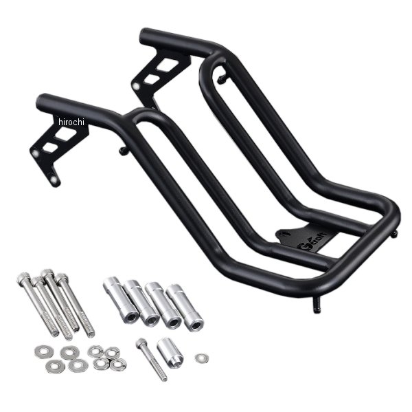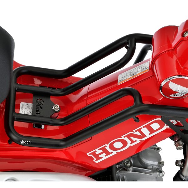 Gクラフト センターキャリア20年-25年 ホンダ ハンターカブ CT125素材:スチール表面処理:パウダーコートブラック幅:190mm最大積載量:3.0KGセンターフレーム上部に装着できるキャリアです。本体の下部にはフック(4箇所)を引っ掛けることができるピンを溶接してあります。また、カウルの傷付き防止、破損防止の役目もはたします。車体中心に荷物を積載できる為、走行の妨げになりにくいです。
