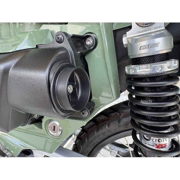 32645 GクラフトCT125 エアフィルターアダプター マットブラックホンダ CT125(JA55、JA65)カラー:マットブラック材質/表面処理:アルミ/アルマイト純正のエアダクトを取り外し、社外品のエアフィルターが装着できるアダプターエアフィルター装着部はΦ48のため社外品のエアフィルターを装着可能。フィルターを装着しない場合でも、取り付けプレートがメッシュ構造になっているため、単品での使用も可能です。アダプターとエアクリーナーボックスの接合部には専用のOリングが付属します。