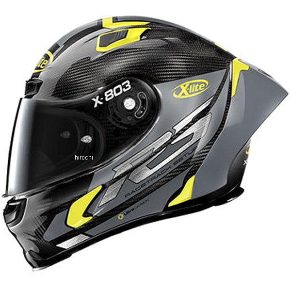 ノーラン NOLAN フルフェイスヘルメット X-803RS Ultra Carbon スカイワープ 黄/50 Mサイズハイエンド素材を使用し、軽量と強度を両立したフラッグシップモデル。風洞実験や実走試験、MotoGPレースで培った空力性能は、高速走行時の安定性を持ち、快適で安定したスポーツライディングを楽しめます。レーストラックエアロダイナミックスポイラー(RAS)エマージェンシーリリースシステム(NERS)安全快適シールド3D立体チークパッドレーシングエアフロー(RAF)ベンチレーション「カーボンフィッティングレーシングエクスペリエンス」インナーコンフォートパディングアジャスタブルスポイラー(ASD)ダブルアクション:一つは高速走行時にバイザーが浮かないようにロック。もう一つはバイザーを少しだけ開けてロックすることによって曇りを取り除くことができます。 アウターシェル材質:カーボン&コンポジットファイバー内装:脱着洗濯可能あごひも:Dリング規格:SG規格(MFJ公認)