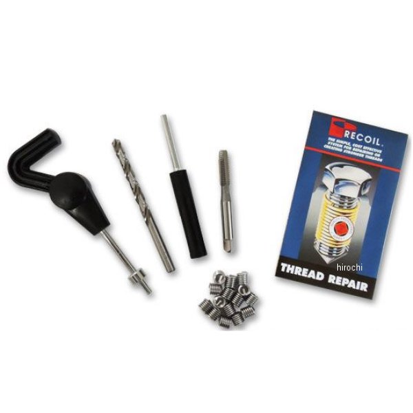 33048 ガッツクローム リコイルキット トレードシリーズ 1/4-20破損したネジ山の修復に非常に便利なリコイルキットのトレードシリーズです。サイズ【UNC1/4-20】長さ 約8mmキット内容 リコイルタップ、リコイル(15個)、挿入工具、折取工具、ドリル17/34インチ(6.7mm)修理箇所の正確なボルトサイズやタップ作業のスペース等、お間違いの無い様、現車現品にてご確認頂きご注文下さい。※作業は必ず専門店で行ってください。