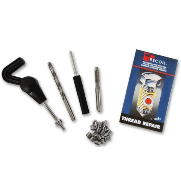 33058 ガッツクローム リコイルキット トレードシリーズ 5/16-18破損したネジ山の修復に非常に便利なリコイルキットのトレードシリーズです。サイズ【UNC5/16-18】長さ 約9mmキット内容 リコイルタップ、リコイル(15個)、挿入工具、折取工具、ドリル64/21インチ(8.3mm)修理箇所の正確なボルトサイズやタップ作業のスペース等、お間違いの無い様、現車現品にてご確認頂きご注文下さい。※作業は必ず専門店で行ってください。
