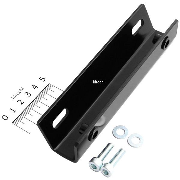 Gクラフト ナンバープレートステー汎用タイプ2カラー:黒インチアップしたタイヤやロングスイングアーム装着車のナンバープレートとの干渉を防ぎます。・取付ピッチ(穴の中心から中心)ナンバー側120mm(M6長穴)、フレーム側115mm(M6ナッター)ミニバイク用のため250cc以上のバイクには取付出来ません。