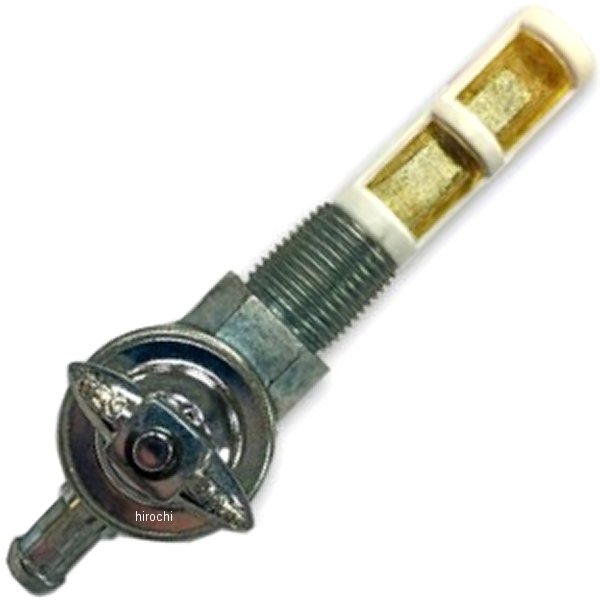 ガッツクローム ウイングタイプペットコック ジンクV-TWIN製OEM品番:62125-55Bショベル(66-74年 FLH、71-74年 FX)純正ウイングタイプペットコックのレプリカです。3/8NPT 下だし。両面につまみがあり、オンとリザーブに分かれています。つまみを垂直にするとガソリンが流れます。(ONのつまみは表示なし、RESERVEのつまみは表示があります。)両方のつまみを平行にするとガソリンが止まります。大きさは両つまみの幅が約5cmです。ガソリン取り出しの径は5/16です。