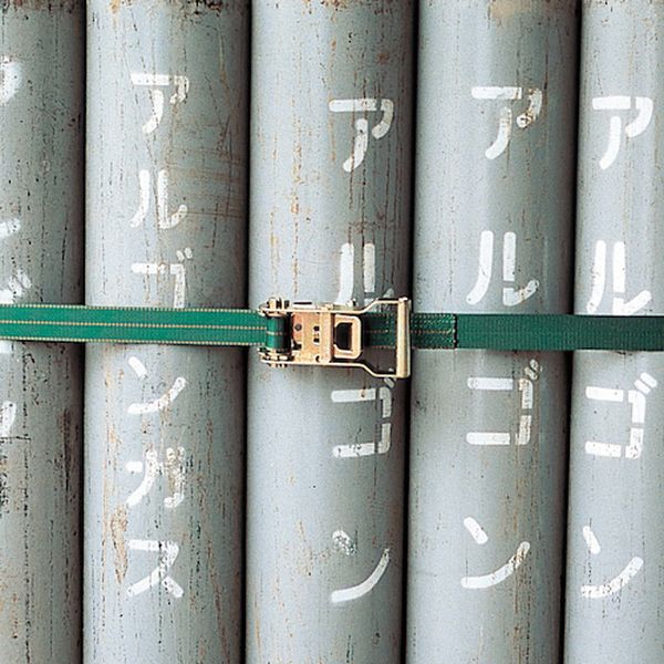 ・ラチェット式により簡単な操作で確実な荷締め作業ができるベルトです。・ベルト側面のセーフティラインにより使用廃止基準が一目で分かります。・ トラックの幌張り、荷物固定に。・大型商品、貨物の荷くずれ防止に。・最大使用荷重(t):0.25・色:緑・ベルト幅(mm):35・幅(mm):35(ベルト)・ベルト長さ(m):5・ラチェット機構・ベルト:ポリエステル・生産国 日本・JANコード 4932134115175・質量 908g・コード:815-1603 ・品目:351002