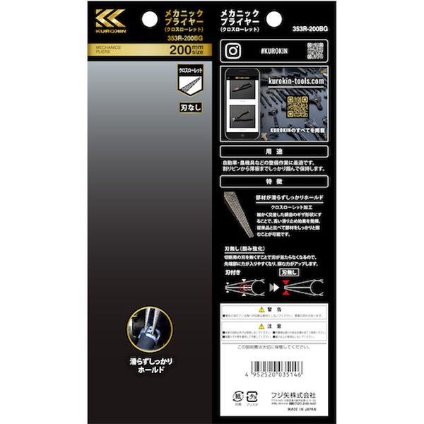 ・細かく交差した網目状のギザ形状にすることで、従来品と比べて2倍の保持力を発揮。・切断刃を無くすことで刃が当たらなくなり、先端部に力が入りやすく、掴む力がアップします。・自動車・農機具などの整備作業に最適です。・割ピンから薄板迄しっかり掴んで保持します。・全長(mm):215・厚さ(mm):13・全長(mm):160・刃:なし・樹脂グリップ付・先端部クロスローレット加工・特殊鋼・グリップ:樹脂・本来の目的以外では使用しないでください。・電気の流れている物への使用は絶対にしないでください。・感電の恐れがあります。・作業時は周りの安全を確かめてご使用ください。・保護メガネ等を着用して作業をしてください。・生産国 日本・JANコード 4952520035146・質量 250g・コード:511-1146 ・品目:353R200BG