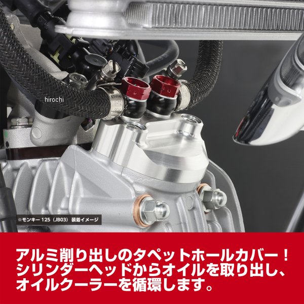 キタコ ニュースーパーオイルクーラーキット21年 ホンダ モンキー125(JB03)3段コアコンデンサー取り出しユニット付属センサー延長ハーネス付属車種専用ステー付属ステー:スチール製ブラックオイル取出口:シリンダーヘッド上部タペットキャップオイル取出口:アルミ削り出し/シルバーアルマイト【仕様説明】ボアアップをはじめとして、ハイチューンされたエンジンの必需品。高回転・高性能化したエンジンはその代償として膨大な熱を発し、ノーマルのままでは、オーバーヒート・焼き付き等、破損する場合がありますので、オイルクーラーの装着をお薦めします。スーパーオイルクーラーKIT(5段コア)は400ccクラスのオイルクーラーと同等の放熱量を誇り、レースを始め炎天下等の苛酷な条件下でも、安定したエンジン性能を発揮します。ボルトオン装着が可能です。オイルクーラーにはホース取り回し自由度が高いユニオンボルトを採用。※ノーマルエアクリーナー使用不可(別途UNIフィルターKITが必要です。)※コンデンサー内オイル容量:150cc(5段コア)、75cc(3段コア)