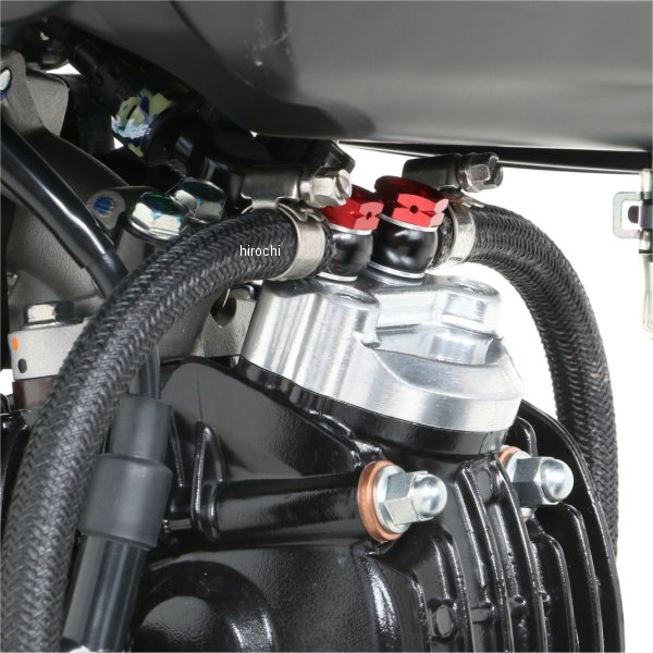 キタコ ニュースーパーオイルクーラーキット21年-22年 ホンダ グロム21年-24年 ホンダ モンキー1255段コアコンデンサー取り出しユニット付属センサー延長ハーネス付属車種専用ステー付属ステー:スチール製ブラックオイル取出口:シリンダーヘッド上部タペットキャップオイル取出口:アルミ削り出し/シルバーアルマイトノーマルエアクリーナー使用可(グロムのみ)【仕様説明】ボアアップをはじめとして、ハイチューンされたエンジンの必需品。高回転・高性能化したエンジンはその代償として膨大な熱を発し、ノーマルのままでは、オーバーヒート・焼き付き等、破損する場合がありますので、オイルクーラーの装着をお薦めします。スーパーオイルクーラーKIT(5段コア)は400ccクラスのオイルクーラーと同等の放熱量を誇り、レースを始め炎天下等の苛酷な条件下でも、安定したエンジン性能を発揮します。ボルトオン装着が可能です。オイルクーラーにはホース取り回し自由度が高いユニオンボルトを採用。※モンキー125(JB03):ノーマルエアクリーナーボックス仕様不可(別途UNIフィルターKITが必要です。)※モンキー125(JB03):キタコ製アンダーガード使用不可。※グロム(JC92)用:キタコ製アンダーガード使用不可。※コンデンサー内オイル容量:150cc(5段コア)、75cc(3段コア)