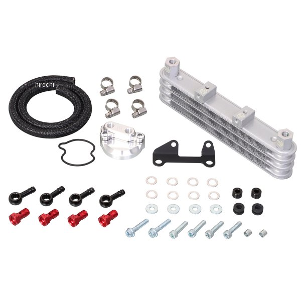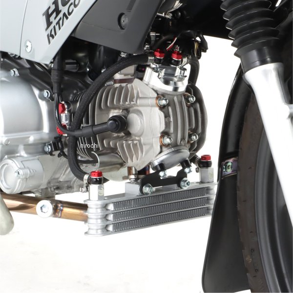 キタコ スーパーオイルクーラーキットホンダ スーパーカブ110(JA59全車種)ホンダ クロスカブ110(JA60全車種)ノーマル、キタコ製124ccボアアップKIT対応3段コア・フレーム下部/シリンダーヘッド下部マウント3段コアコンデンサーコンデンサー内オイル容量:75ccオイルライン取出し:シリンダーヘッド上部タペットキャップ付属タペットキャップ:アルミ削り出しステー:スチール製/ブラック塗装仕上げユニオンニップル:ブラック仕様シリンダーヘッド下部マウントの場合ノーマルエアクリーナー使用可※フレーム下部マウントの場合、ノーマルエアクリーナー使用不可。別途UNIフィルターKIT、オイルクーラーホース(100cm)が必要です。※シリンダーヘッド下部マウントはノーマルマフラー使用不可。ボアアップをはじめとして、ハイチューンされたエンジンの必需品。高回転・高性能化したエンジンはその代償として膨大な熱を発し、ノーマルのままでは、オーバーヒート・焼き付き等、破損する場合がありますので、オイルクーラーの装着をお薦めします。
