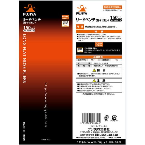 ・先端部が広くて薄いため、安定してつかめます。・メッキ加工を施しているので、サビにくく滑らかな動きを維持します。・自動車、バイクのラジエターフィンの修理に最適です。・製造時の使用電力の20%を太陽光発電で賄っています。・エレクトロニクス、精密機器などの組立・修理・分解作業に。・全長(mm):157・E×F(mm):1×7・落下防止用ひも取付穴:無・先端形状(mm)E×F:1×7・先端部ギザなし・メッキ加工・特殊鋼・グリップ:樹脂・能力以上の使用はしないで下さい。・電気が流れている物への切断は絶対にしないで下さい。・生産国 日本・JANコード 4952520036761・質量 85g・コード:393-9740 ・品目:360A150