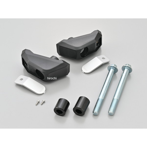 25年 ホンダ CB1000 ホーネット / SP樹脂製パッドが転倒時のダメージを吸収し、マシンへのダメージを緩和。流線形パッドとアルミプレートの組み合わせで機能とドレスアップ効果を両立します。【意匠登録 No.1762940】【素材】スライダー本体:PA66GF15スペーサー:アルミ(ブラックアルマイト)ボルト:スチール・パイプエンジンガード(62415)との同時装着可能。※本商品は軽度の転倒時における、エンジンや車体へのダメージを軽減する目的の商品となります。転倒時の傷やカウル類の割れなどを保護するものではございません。また転倒時の状況によっては、未装着時よりダメージが大きくなる場合やダメージを軽減できない場合もございます。あらかじめご了承ください。※本商品の本体は、一定以上の衝撃を受けると、衝撃を緩和するために本体が破損(ボルト固定部周辺)するよう設計されております。破損した場合は新しいスライダーに交換してください。