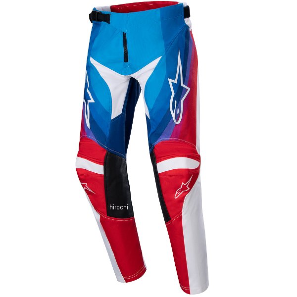 アルパインスターズ オフロード パンツ ユースレーサールーセントサイズ:26インチカラー:ブルー/マーズレッド/ホワイト【仕様説明】・高強度の600デニールポリエステル生地を使用し高い耐久力を誇る。・可動部は運動性を高めるストレッチ生地を使用。・立体裁断と乗車姿勢に合わせてカーブした膝のデザインによってライディング時の快適性が向上。・耐熱性、グリップ力に優れたレザー製ニーパネル。・ラチェット