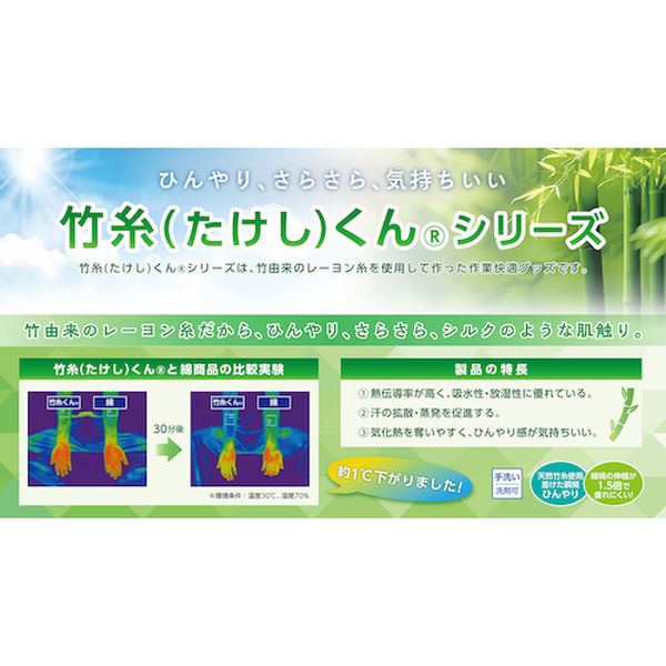 ・熱伝導率が高く吸水性・放湿性に優れ、汗の拡散・蒸発を促進させます。・ひんやり感が気持ち良い天然竹糸ならではの優しく、滑らかな肌触りの良さがあります。・熱中症予防対策に。・色:ブラック・長さ(cm):30・UVカット98%・洗濯可(手洗い)・レーヨン(竹由来)・ゴム・スパン糸・生産国 中国・JANコード 4932134178217・質量 56g・コード:107-2583 ・品目:375073