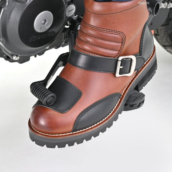 デイトナ DS-002 シャーリングライドブーツ レディース コンビ 24.0cmサイズ:24.0cmカラー:コンビMaxFritzの佐藤氏が監修。レーシングブーツからインスパイアされたショートブーツ。前後の足の動きをサポートするようにシャーリングを入れ、厚みのあるレザーでも動きやすく設計。2mm以上の厚みのあるフルグレインレザーを厳選。デイトナのレザーブーツで一番上質な牛革を採用しました。今回採用した牛オイルプルアップレザーは、一般的なオイルレザーよりもさらに多くのオイルを染み込ませて作られたレザーです。深くまで染み込んだ多量のオイルにより、革が柔らかく耐久性を高めます。また撥水性が高いことも特徴の一つです。折り曲げたりすると革内部の油分が繊維の中を移動し、その部分だけ色が薄く変化。色の変化から立体感のあるエイジングが楽しめます。E相当のワイズで細身のシルエット。スッキリと見えるブーツに仕上げました。見た目のバランスを考えて少し厚めのアウトソールを採用。細身のシルエットに厚めのソールがレザーブーツらしい重厚感を演出します。履き口に配置した厚手のクッションがブーツとの擦れを軽減し、履き心地を良くします。シフトパッドは左右シンメトリーで配置し、シフトチェンジによるブーツへのダメージと足へのショックを和らげます。ソールは土踏まず部分に滑り止め加工を施し、ステップとのグリップ力を発揮。YKKのロックファスナーを使用したサイドジップでブーツの脱ぎ履きが楽になります。※23.0-24.5cmはレディースサイズです。※防水機能はありません。
