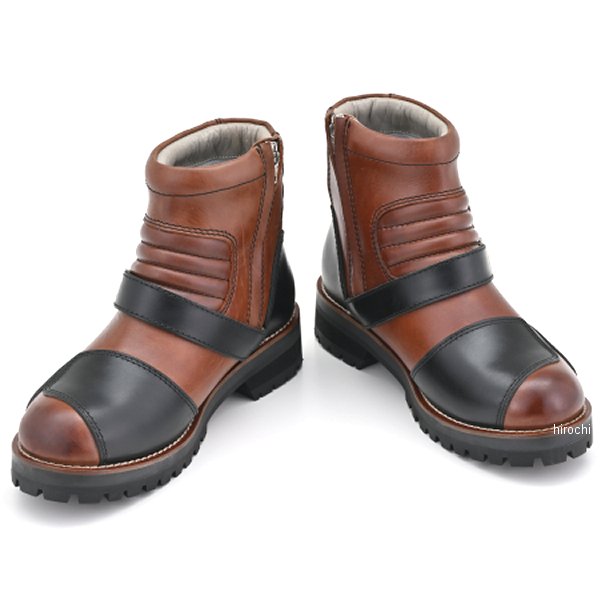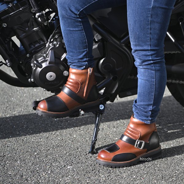 デイトナ DS-002 シャーリングライドブーツ コンビ 25.0cmサイズ:25.0cmカラー:コンビMaxFritzの佐藤氏が監修。レーシングブーツからインスパイアされたショートブーツ。前後の足の動きをサポートするようにシャーリングを入れ、厚みのあるレザーでも動きやすく設計。2mm以上の厚みのあるフルグレインレザーを厳選。デイトナのレザーブーツで一番上質な牛革を採用しました。今回採用した牛オイルプルアップレザーは、一般的なオイルレザーよりもさらに多くのオイルを染み込ませて作られたレザーです。深くまで染み込んだ多量のオイルにより、革が柔らかく耐久性を高めます。また撥水性が高いことも特徴の一つです。折り曲げたりすると革内部の油分が繊維の中を移動し、その部分だけ色が薄く変化。色の変化から立体感のあるエイジングが楽しめます。E相当のワイズで細身のシルエット。スッキリと見えるブーツに仕上げました。見た目のバランスを考えて少し厚めのアウトソールを採用。細身のシルエットに厚めのソールがレザーブーツらしい重厚感を演出します。履き口に配置した厚手のクッションがブーツとの擦れを軽減し、履き心地を良くします。シフトパッドは左右シンメトリーで配置し、シフトチェンジによるブーツへのダメージと足へのショックを和らげます。ソールは土踏まず部分に滑り止め加工を施し、ステップとのグリップ力を発揮。YKKのロックファスナーを使用したサイドジップでブーツの脱ぎ履きが楽になります。※23.0-24.5cmはレディースサイズです。※防水機能はありません。