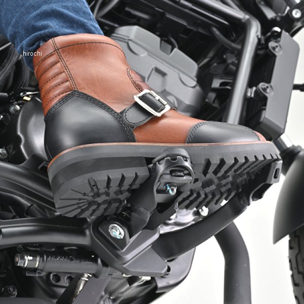 デイトナ DS-002 シャーリングライドブーツ コンビ 28.0cmサイズ:28.0cmカラー:コンビMaxFritzの佐藤氏が監修。レーシングブーツからインスパイアされたショートブーツ。前後の足の動きをサポートするようにシャーリングを入れ、厚みのあるレザーでも動きやすく設計。2mm以上の厚みのあるフルグレインレザーを厳選。デイトナのレザーブーツで一番上質な牛革を採用しました。今回採用した牛オイルプルアップレザーは、一般的なオイルレザーよりもさらに多くのオイルを染み込ませて作られたレザーです。深くまで染み込んだ多量のオイルにより、革が柔らかく耐久性を高めます。また撥水性が高いことも特徴の一つです。折り曲げたりすると革内部の油分が繊維の中を移動し、その部分だけ色が薄く変化。色の変化から立体感のあるエイジングが楽しめます。E相当のワイズで細身のシルエット。スッキリと見えるブーツに仕上げました。見た目のバランスを考えて少し厚めのアウトソールを採用。細身のシルエットに厚めのソールがレザーブーツらしい重厚感を演出します。履き口に配置した厚手のクッションがブーツとの擦れを軽減し、履き心地を良くします。シフトパッドは左右シンメトリーで配置し、シフトチェンジによるブーツへのダメージと足へのショックを和らげます。ソールは土踏まず部分に滑り止め加工を施し、ステップとのグリップ力を発揮。YKKのロックファスナーを使用したサイドジップでブーツの脱ぎ履きが楽になります。※23.0-24.5cmはレディースサイズです。※防水機能はありません。
