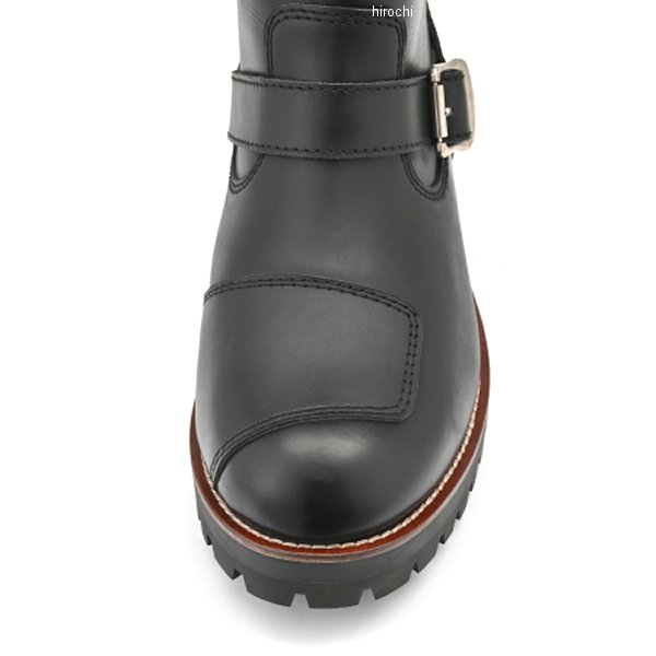 デイトナ DS-003 エンジニアブーツ ブラック 27.5cmサイズ:27.5cmカラー:ブラックMaxFritzの佐藤氏が監修。オーソドックスなエンジニアブーツ形状のショートタイプ。カジュアルでありながら履きやすい丈のバイク用ブーツ。横から見たデザインを重視し、ファスナーをヒール側に設置。2mm以上の厚みのあるフルグレインレザーを厳選。デイトナのレザーブーツで一番上質な牛革を採用しました。今回採用した牛オイルプルアップレザーは、一般的なオイルレザーよりもさらに多くのオイルを染み込ませて作られたレザーです。深くまで染み込んだ多量のオイルにより、革が柔らかく耐久性を高めます。また撥水性が高いことも特徴の一つです。折り曲げたりすると革内部の油分が繊維の中を移動し、その部分だけ色が薄く変化。色の変化から立体感のあるエイジングが楽しめます。E相当のワイズで細身のシルエット。スッキリと見えるブーツに仕上げました。見た目のバランスを考えて少し厚めのアウトソールを採用。細身のシルエットに厚めのソールがレザーブーツらしい重厚感を演出します。シフトパッドは左右シンメトリーで配置し、シフトチェンジによるブーツへのダメージと足へのショックを和らげます。ソールは土踏まず部分に滑り止め加工を施し、ステップとのグリップ力を発揮。YKKのロックファスナーをヒール側に設置。ブーツの脱ぎ履きが楽になります。※ 23.0-24.5cmはレディースサイズです。※ 防水機能はありません。