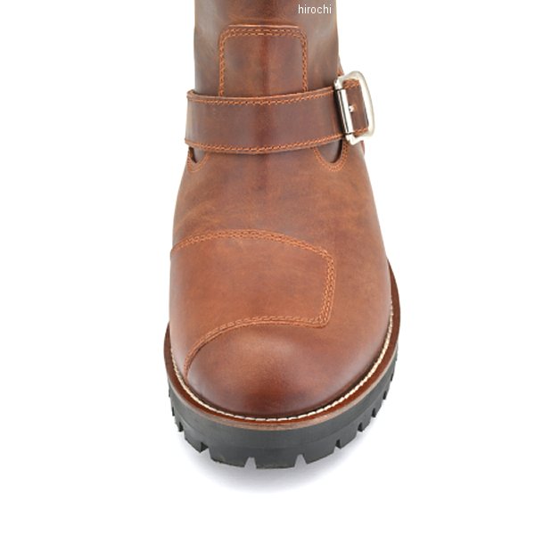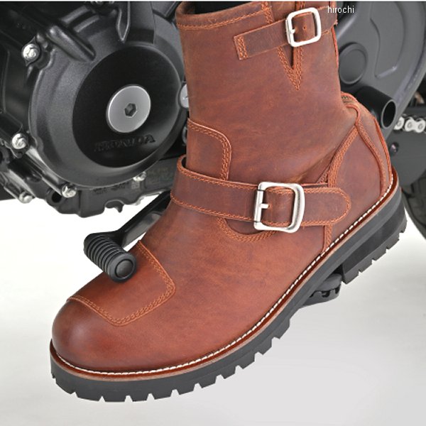 デイトナ DS-003 エンジニアブーツ ブラウン 27.5cmサイズ:27.5cmカラー:ブラウンMaxFritzの佐藤氏が監修。オーソドックスなエンジニアブーツ形状のショートタイプ。カジュアルでありながら履きやすい丈のバイク用ブーツ。横から見たデザインを重視し、ファスナーをヒール側に設置。2mm以上の厚みのあるフルグレインレザーを厳選。デイトナのレザーブーツで一番上質な牛革を採用しました。今回採用した牛オイルプルアップレザーは、一般的なオイルレザーよりもさらに多くのオイルを染み込ませて作られたレザーです。深くまで染み込んだ多量のオイルにより、革が柔らかく耐久性を高めます。また撥水性が高いことも特徴の一つです。折り曲げたりすると革内部の油分が繊維の中を移動し、その部分だけ色が薄く変化。色の変化から立体感のあるエイジングが楽しめます。E相当のワイズで細身のシルエット。スッキリと見えるブーツに仕上げました。見た目のバランスを考えて少し厚めのアウトソールを採用。細身のシルエットに厚めのソールがレザーブーツらしい重厚感を演出します。シフトパッドは左右シンメトリーで配置し、シフトチェンジによるブーツへのダメージと足へのショックを和らげます。ソールは土踏まず部分に滑り止め加工を施し、ステップとのグリップ力を発揮。YKKのロックファスナーをヒール側に設置。ブーツの脱ぎ履きが楽になります。※ 23.0-24.5cmはレディースサイズです。※ 防水機能はありません。