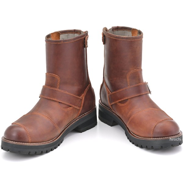 デイトナ DS-003 エンジニアブーツ ブラウン 28.0cmサイズ:28.0cmカラー:ブラウンMaxFritzの佐藤氏が監修。オーソドックスなエンジニアブーツ形状のショートタイプ。カジュアルでありながら履きやすい丈のバイク用ブーツ。横から見たデザインを重視し、ファスナーをヒール側に設置。2mm以上の厚みのあるフルグレインレザーを厳選。デイトナのレザーブーツで一番上質な牛革を採用しました。今回採用した牛オイルプルアップレザーは、一般的なオイルレザーよりもさらに多くのオイルを染み込ませて作られたレザーです。深くまで染み込んだ多量のオイルにより、革が柔らかく耐久性を高めます。また撥水性が高いことも特徴の一つです。折り曲げたりすると革内部の油分が繊維の中を移動し、その部分だけ色が薄く変化。色の変化から立体感のあるエイジングが楽しめます。E相当のワイズで細身のシルエット。スッキリと見えるブーツに仕上げました。見た目のバランスを考えて少し厚めのアウトソールを採用。細身のシルエットに厚めのソールがレザーブーツらしい重厚感を演出します。シフトパッドは左右シンメトリーで配置し、シフトチェンジによるブーツへのダメージと足へのショックを和らげます。ソールは土踏まず部分に滑り止め加工を施し、ステップとのグリップ力を発揮。YKKのロックファスナーをヒール側に設置。ブーツの脱ぎ履きが楽になります。※ 23.0-24.5cmはレディースサイズです。※ 防水機能はありません。