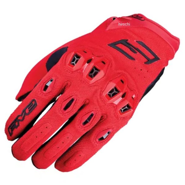 ファイブ FIVE グローブ STUNT EVO 2サイズ:XLカラー:レッド【AirgoProtechナックルプロテクター】・衝撃吸収性、通気性に優れるハニカム構造のソフトクッション素材を、人間工学に基づき開発した分割形状ハードプロテクターに閉じ込めた、次世代プロテクター。【ERGO PROTECHパームスライダー】・人間工学に基づき開発したプロテクター。ハンドルを握ったときにプロテクターが操作性を妨げず、保護性能を確保。【ツイルスパンストレッチ】・手の甲側に伸縮性、耐久性に優れた素材を採用。別次元のフィッティングを実現。【手のひらにフルグレインゴートレザー】・手のひらにソフトで滑らかな、また耐久性にも優れたフルグレインゴートレザーを採用。縫製部分を少なくし、フィッティング性能を向上。【親指にソフトシェル構造】・親指には快適性を追求したソフトシェル素材を採用。ボタン操作を妨げず、親指に吸い付くようなフィット感を実現。【指の間にストレッチナイロン】・指の間に伸縮性の高いストレッチナイロンを採用し、指の形に快適フィット。【Neoprene製リストバンド】・手首に伸縮性の高いNeoprene素材を採用し、フィット感と快適性を向上。【Touch Screenシステム(スマホタッチ)】・指先にスマートフォン操作に対応した素材を構成。※Touch Screen用素材は、画像と色・素材が異なる場合がありますが、機能・操作性に変更はございません。