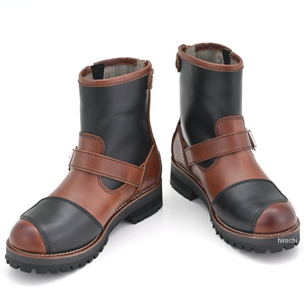 デイトナ DS-003 エンジニアブーツ コンビ 28.0cmサイズ:28.0cmカラー:コンビMaxFritzの佐藤氏が監修。オーソドックスなエンジニアブーツ形状のショートタイプ。カジュアルでありながら履きやすい丈のバイク用ブーツ。横から見たデザインを重視し、ファスナーをヒール側に設置。2mm以上の厚みのあるフルグレインレザーを厳選。デイトナのレザーブーツで一番上質な牛革を採用しました。今回採用した牛オイルプルアップレザーは、一般的なオイルレザーよりもさらに多くのオイルを染み込ませて作られたレザーです。深くまで染み込んだ多量のオイルにより、革が柔らかく耐久性を高めます。また撥水性が高いことも特徴の一つです。折り曲げたりすると革内部の油分が繊維の中を移動し、その部分だけ色が薄く変化。色の変化から立体感のあるエイジングが楽しめます。E相当のワイズで細身のシルエット。スッキリと見えるブーツに仕上げました。見た目のバランスを考えて少し厚めのアウトソールを採用。細身のシルエットに厚めのソールがレザーブーツらしい重厚感を演出します。シフトパッドは左右シンメトリーで配置し、シフトチェンジによるブーツへのダメージと足へのショックを和らげます。ソールは土踏まず部分に滑り止め加工を施し、ステップとのグリップ力を発揮。YKKのロックファスナーをヒール側に設置。ブーツの脱ぎ履きが楽になります。※ 23.0-24.5cmはレディースサイズです。※ 防水機能はありません。