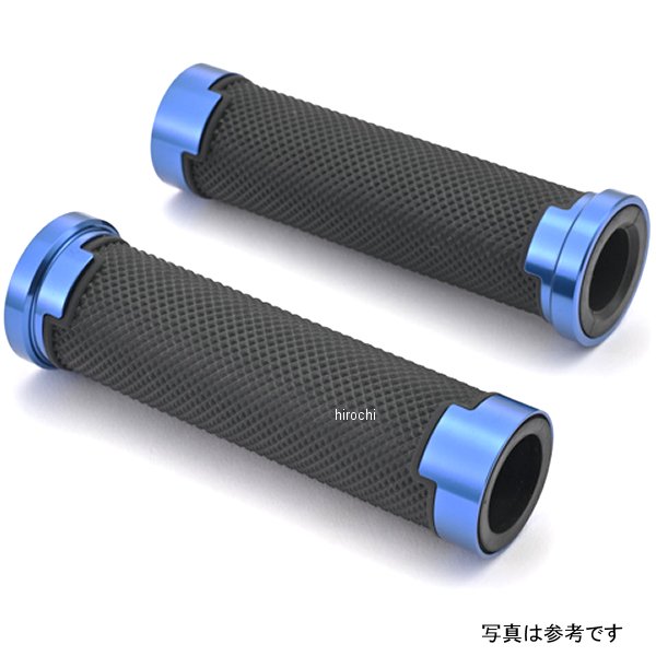 デイトナ GRIPPGRIP AL BASEブルーアクセルを握ったとき滑りにくい表面パターンと、グリップ力に優れる素材を組み合わせることで、長時間のライディングでも疲れにくい。人気のGG-D-BASEと、アルミリングの組み合わせ。全長125mm/Φ22.2ハンドル用エンド貫通