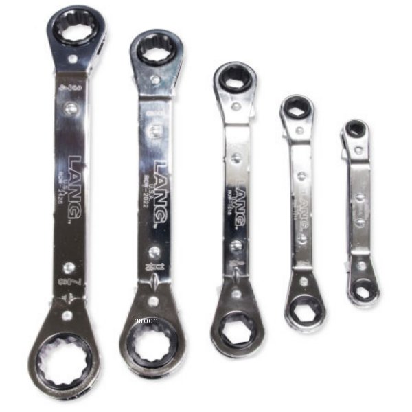 3850-0440 ガッツクローム インチサイズ ラチェッティングレンチセットLANG TOOLS製 ラチェットレンチセットです。ソケットが入らないスペースの無い場所でも素早くネジの脱着が可能。10サイズ5本のセットです。6ポイント → 1/4、5/16、3/8、7/16、1/2、9/1612ポイント → 5/8、11/16、3/4、7/8回転方向はスイッチで変えられます。
